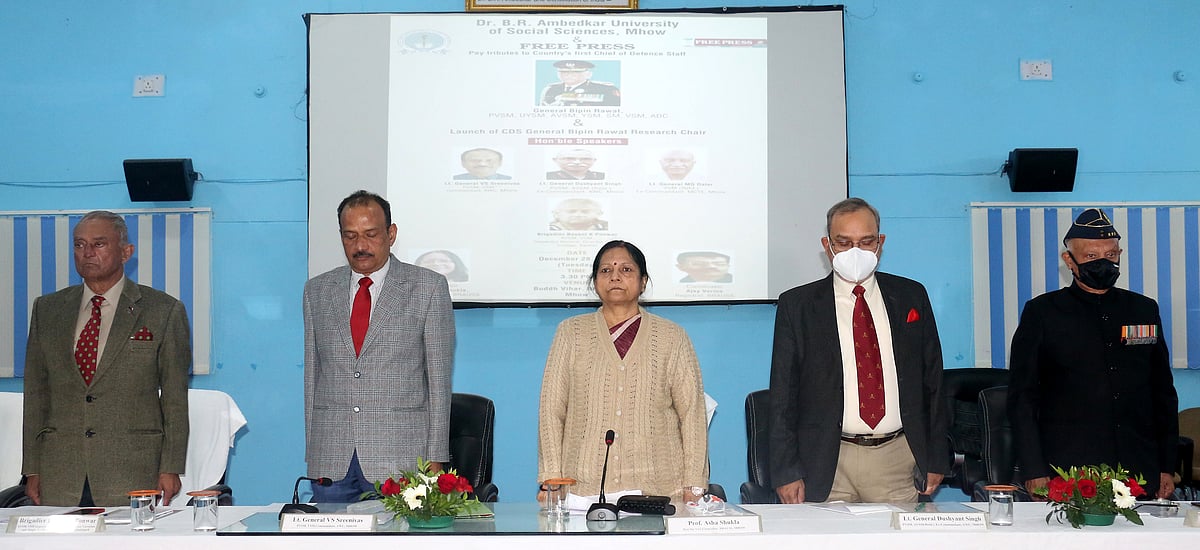 Indore: In a first, Dr BR Ambedkar University of Social Sciences, Mhow, on Tuesday, announced a Research Chair dedicated to country's first Chief of the Defence Staff General Bipin Rawat, who died in a helicopter crash on December 8, 2020, along with his wife and other senior defence officials. Vice-Chancellor Prof. Asha Shukla made the announcement during a programme organised in association with Free Press in memory of General Rawat.