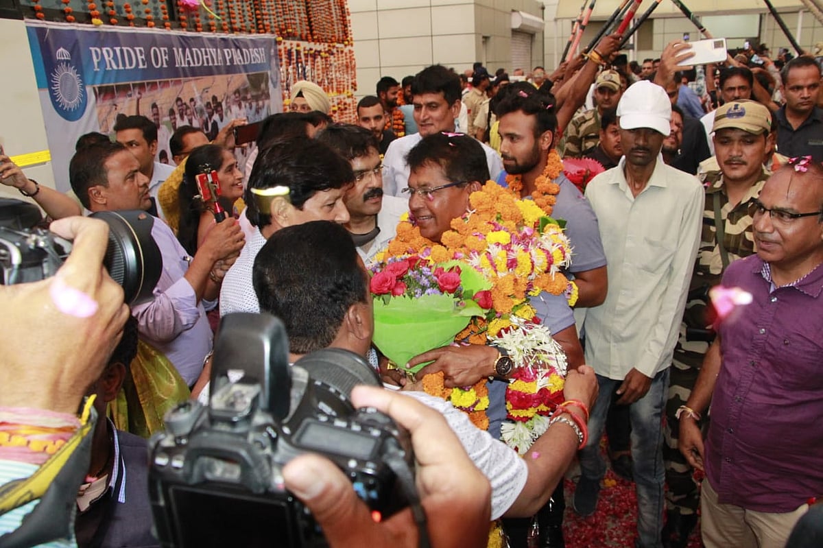 The city welcomed the team at the Airport with full enthusiasm. President of Indore Cricket Association, Kailash Vijayvargiya and office bearers of Madhya Pradesh Cricket Association were also present at the Airport. They congratulated the team and welcomed them to the city.