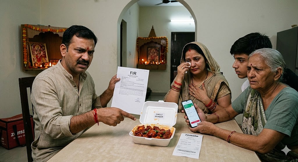 According to information, the incident took place in the Gulabbagh area. Rahul Tiwari, a mobile shop owner, said that his family was performing Navratri pooja on Sunday evening when he ordered food through Zomato in veg mode.