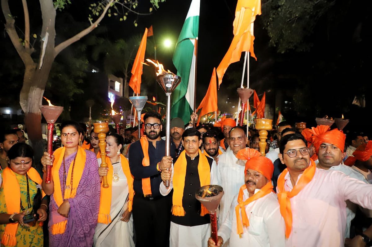 The traditional procession began from Footi Kothi (Sant Sevalal Bridge) and concluded at Maharana Pratap Chowk, drawing participation from people across all age groups. With flaming torches in hand, saffron flags waving and chants of “Bharat Mata Ki Jai” echoing through the streets, the rally transformed the city into a vibrant symbol of national pride.