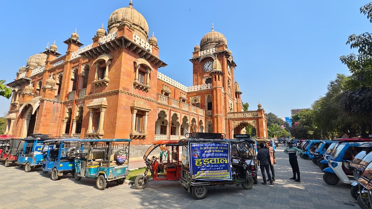 Indore (Madhya Pradesh): E-rickshaw drivers in Madhya Pradesh’s Indore carried out a work strike on Monday at the city's Gandhi Hall.