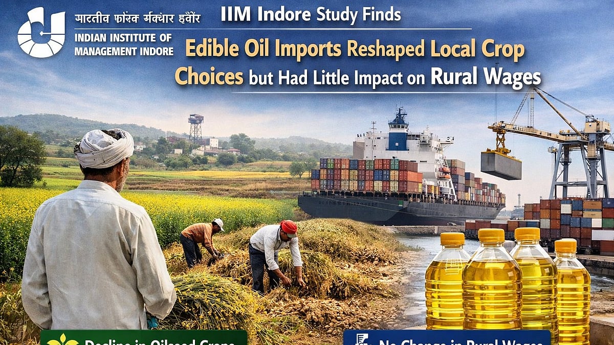 Indore (Madhya Pradesh): A study by researchers at the Indian Institute of Management Indore (IIM Indore) has found that India’s surge in edible oil imports following trade liberalisation in the 1990s significantly affected local crop production patterns and edible oil prices but did not meaningfully change rural wages or agricultural employment.