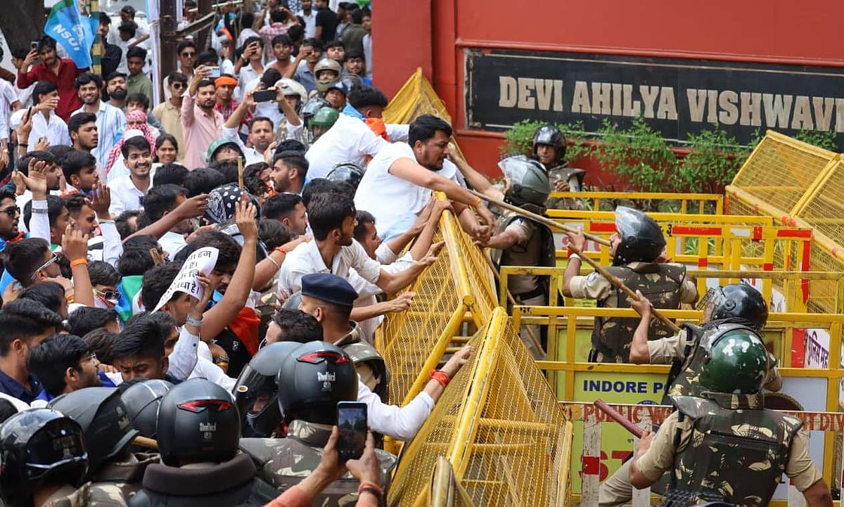 Indore (Madhya Pradesh): A protest at Devi Ahilya Vishwavidyalaya’s RNT Marg campus on Tuesday turned tense when a large number of National Students' Union of India (NSUI) workers gathered to demonstrate, alleging irregularities at the university.