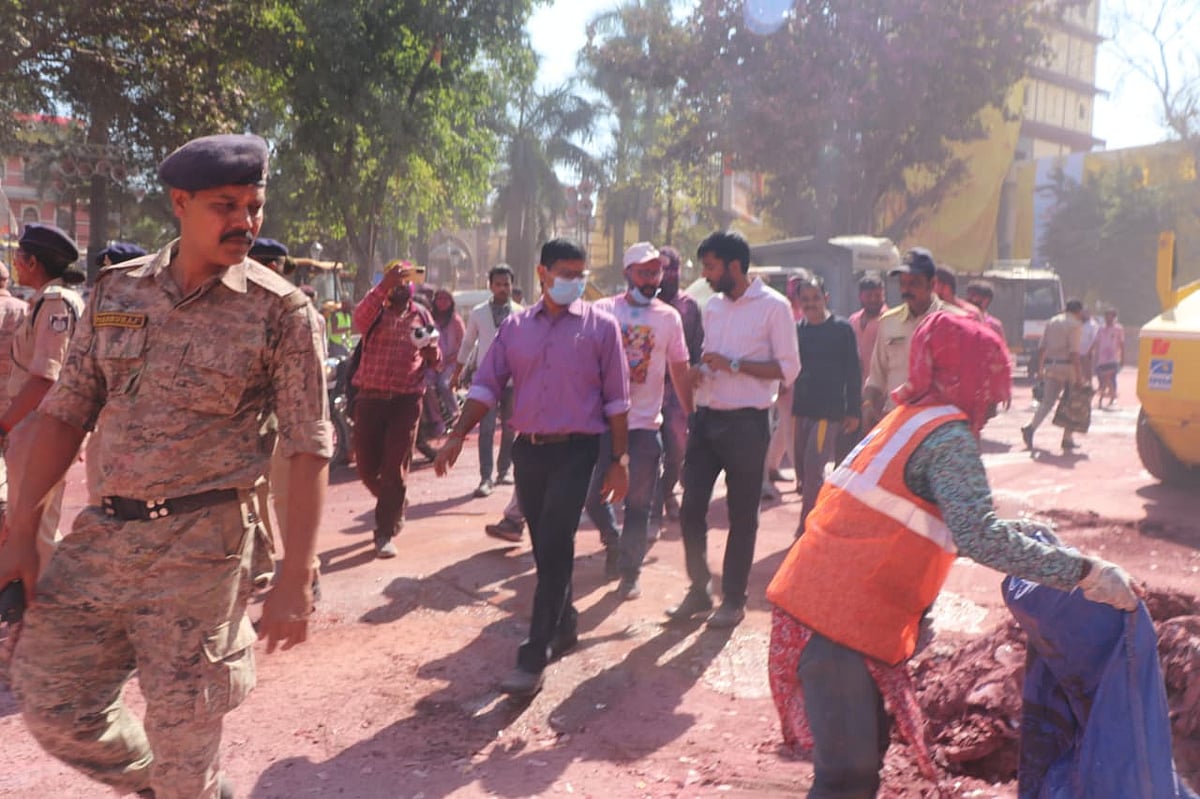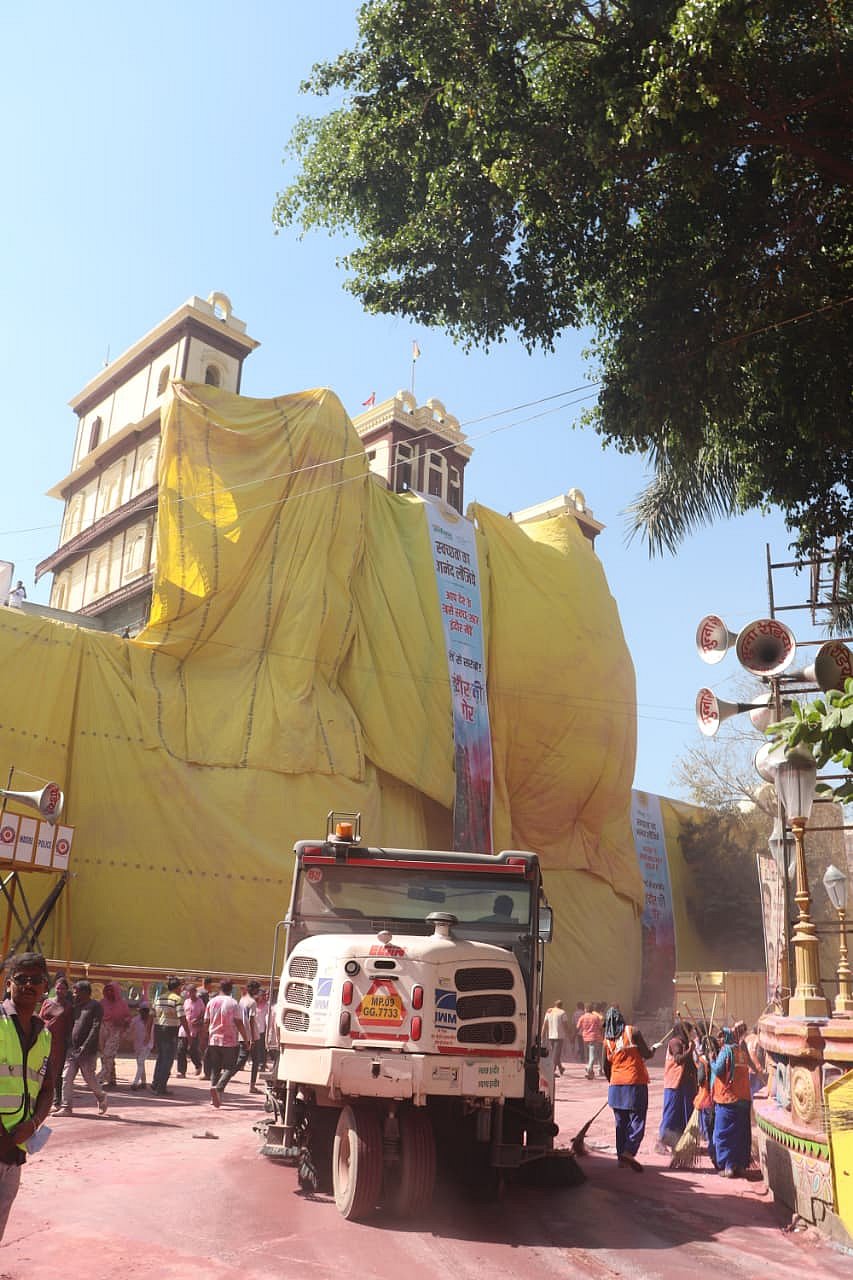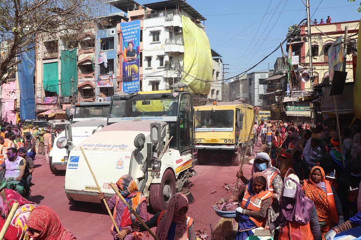 Soon after the procession ended, the Indore Municipal Corporation launched a special clean-up drive with more than 400 sanitation workers and several machines.