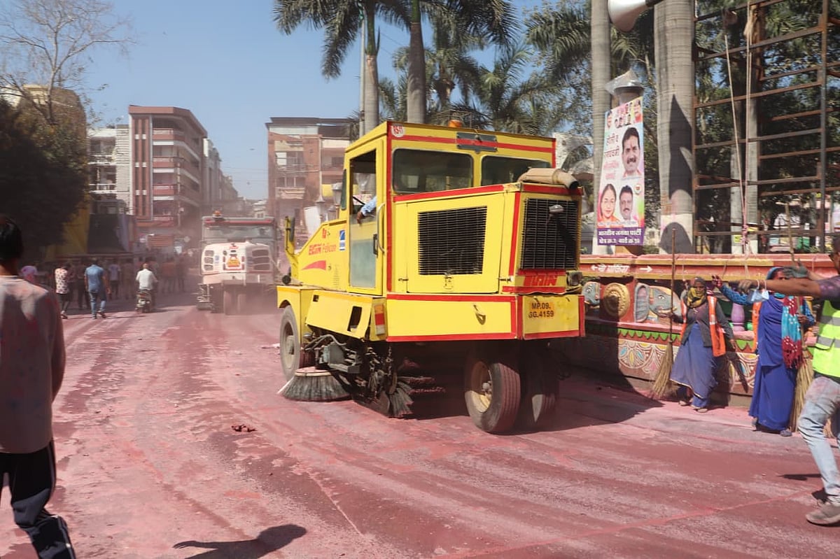 To ensure quick cleaning after the celebrations, the Indore Municipal Corporation had deployed extensive resources in advance. The arrangements included 10 sweeping machines, 7 dumpers, 6 JCBs, 3 long-hauling vehicles, 3 tractors, 30 open vehicles and 20 jet pressure machines, along with a team of more than 400 sanitation workers.