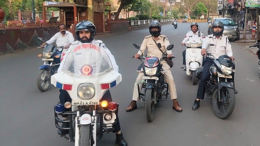 Indore (Madhya Pradesh): Traffic management police launched a drive in busy areas such as Dawa Bazar, Jawahar Marg, Airport Road and Vijay Nagar and took action against hundreds of violators on Sunday.
