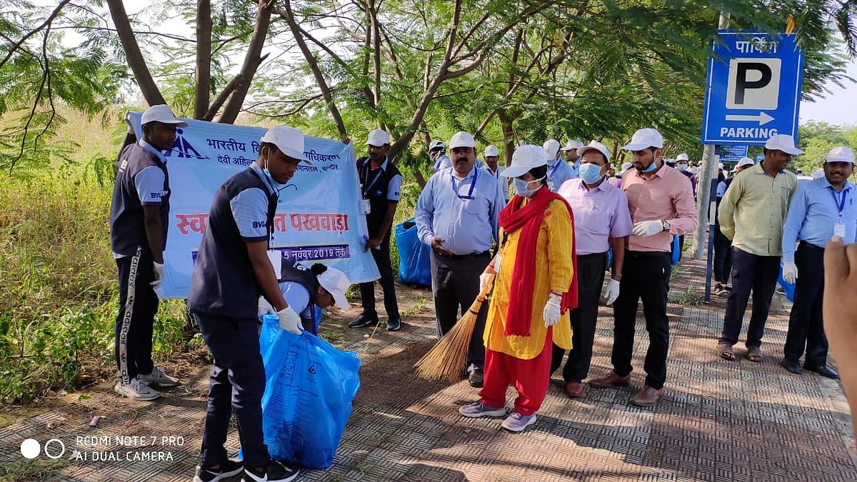 Over 50 staff of Airport Authority of India (AAI), Central Industrial Security Force (CISF) and airlines staff did mass cleaning on ‘Guru Parv’ at the parking area of the airport. Airport Director Aryama Sanyal was leading the joint cleaning drive. Later she informed that the airport administration will enthusiastically participate in the city’s cleanliness survey 2019 and do every effort to retain the title of the cleanest city of the country for 4th time in a row. She highlighted that the use of single use plastic is banned in the terminal building from last year. Even if any passenger brings a water bottle and leave it airport before boarding, we have set-up a mechanism to crush such bottles in the terminal building.