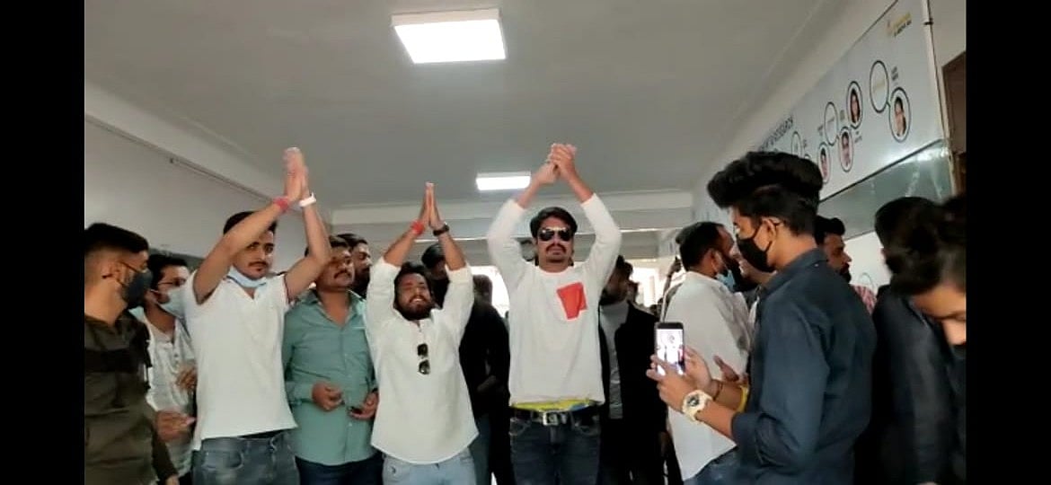 A day after getting offline exams of DAVV deferred, NSUI on Thursday reached PIMR campus and shouted slogans against college management. They demanded the cancellation of exams scheduled in offline mode. They stated that the Covid-19 threat still persists so exams should not be held in offline mode.
