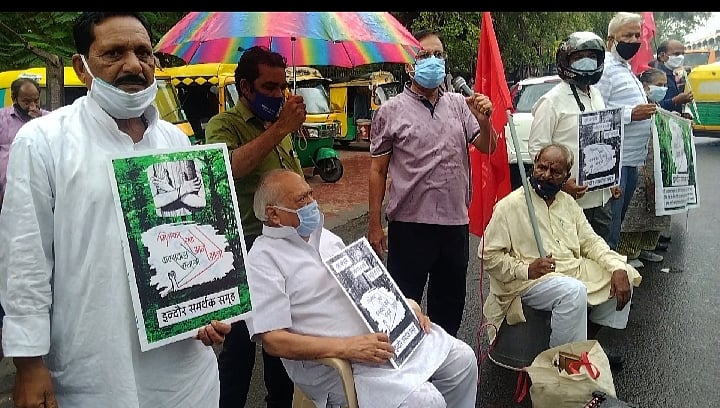 Further, under the leadership of former advocate general Padma Shri Anand Mohan Mathur, a human chain was formed in front of the divisional commissioner's office of Indore in support of the demand of save the environment, save the forest.