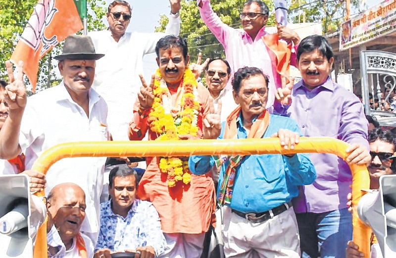 Indore: Though they did not bury their hatchet, BJP senior leader Satyanarayan Sattan and former MLA of Indore-1 constituency Sudarshan Gupta on Saturday came together to campaign for party candidate Shankar Lalwani for Indore Lok Sabha seat. The duo leaders along with Lalwani and Indore-2 MLA Ramesh Mendola and party city president were seen on a jeep seeking votes for BJP. Lalwani started his Lok Sabha election campaign from Indore-1 assembly constituency. After performing puja at Khedapati Hanuman temple in Sirpur area, the campaign was commenced.