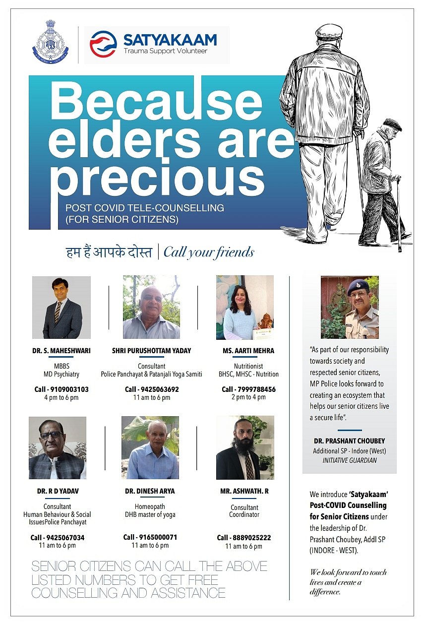 Indore: Senior citizens who have beaten Covid-19 successfully in the city will now receive post-Covid tele-counselling from the volunteers of Saytakaam. Apart from police, doctors and social activists have been included in Satyakaam's volunteers' list. The whole idea is to uplift their minds/mood and clear their doubts so that they can live a normal life.