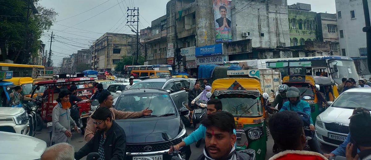 Meanwhile, several vehicles were stuck in a traffic jam that stretched for half a kilometre on Jawahar Marg at Nandlalpura Square and the intersection of Sanjay Setu Road and Jawahar Marg for hours on Tuesday afternoon. The traffic snarl was caused as there is no traffic signal at the intersection of Sanjay Setu Road and Jawahar Marg and also the fact that vehicles queued behind each other in a haphazard manner with everybody wanting to go first.