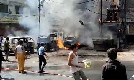 According to a fire brigade official, the incident took place in the colony near Raoji Bazaar police station at around 9.50 am. The people of the area spotted the flames and informed the fire brigade and Raoji Bazaar police station. The local residents also tried to extinguish the fire with water but the flames were leaping out of the transformer, making it impossible to come near it. Soon six vehicles parked near the transformer were gutted in the fire. The two cars were owned by Vikas Jain and Rajesh Verma, while the auto-rickshaw belonged to Santosh Verma. Two scooters and a bike were also engulfed in the fire.