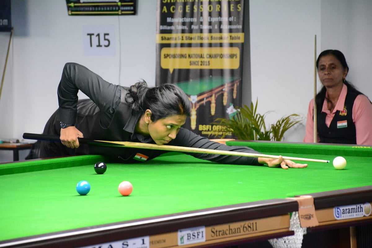 The women's title match will be played between Vidya Pillai and Varsha Sanjeev. Vidya of Karnataka defeated Ami Kamani of MP 4-1 in the semi-finals. Vidya won the match 31-11, 40-9, 34-3, 0-64, 30-18. In the second semi-final, Karnataka's Varsha defeated Tamil Nadu's Anupama Ramachandran 4-2. Varsha won the match 49-16, 30-35, 40-1, 15-45, 41-30, 41-17. Sunil Bajaj, secretary of the Indian Billiards-Snooker Association, said matches of double elimination round of 15-red snooker have also started.