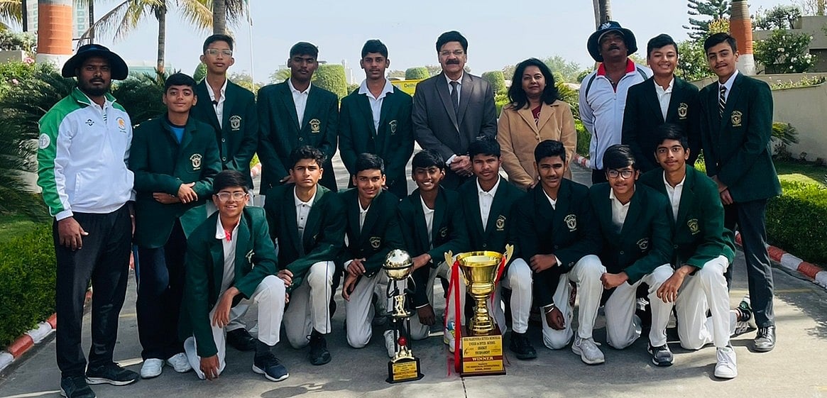 Under the Gurudev Gupta Inter-School Cricket Tournament, organized by DPS Nipania, a match was played between Choithram School North and Golden International School. Choithram School scored 149 runs for 3 wickets in 16 overs while batting first. Krish Tharwani scored 40 and Parth Bansal scored 35 runs. Vedansh took 2 wickets. In reply, Golden International School was all out for 53 runs in 13 overs and lost the match by 96 runs. Shivang Kalwani took 4 and Veer Jain and Aditya Goyal bagged 2 wickets each.