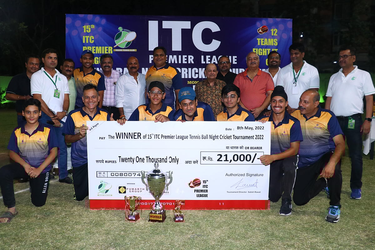 Pumarth Infrastructure 15th ITC Night Tennis Ball Cricket Premier League-2022 organized at Indore Tennis Club. In the final, Manan Apparels won the title by defeating Alpha Enterprises by 14 runs.