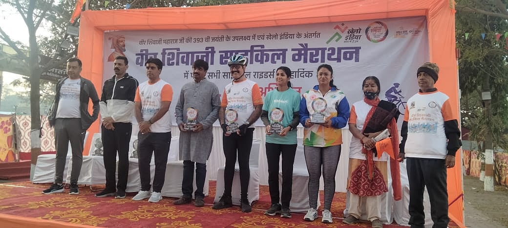 Various events are being organized all over the country on the 393rd birth anniversary of Shivaji Maharaj. A grand event of Veer Shivaji Cycle Marathon was organized under Khelo India in Indore. Pankaj Fatehchandani, president of Namo Namo Shankara said a huge cycle marathon was taken out from Lalbagh complex to Veer Shivaji Maharaj (Shivaji Vatika) in which 750 senior citizens, youth and women participated. The marathon was started by a 5-year-old girl by cutting the ribbon and she participated in the yatra by riding a bicycle. The main attraction of the yatra was saffron flag on each cycle along with Veer Shivaji and national songs and along with social people of all religions, doctor-lawyer-yoga guru participated in the marathon and grand welcome by social organizations coming on the yatra route.