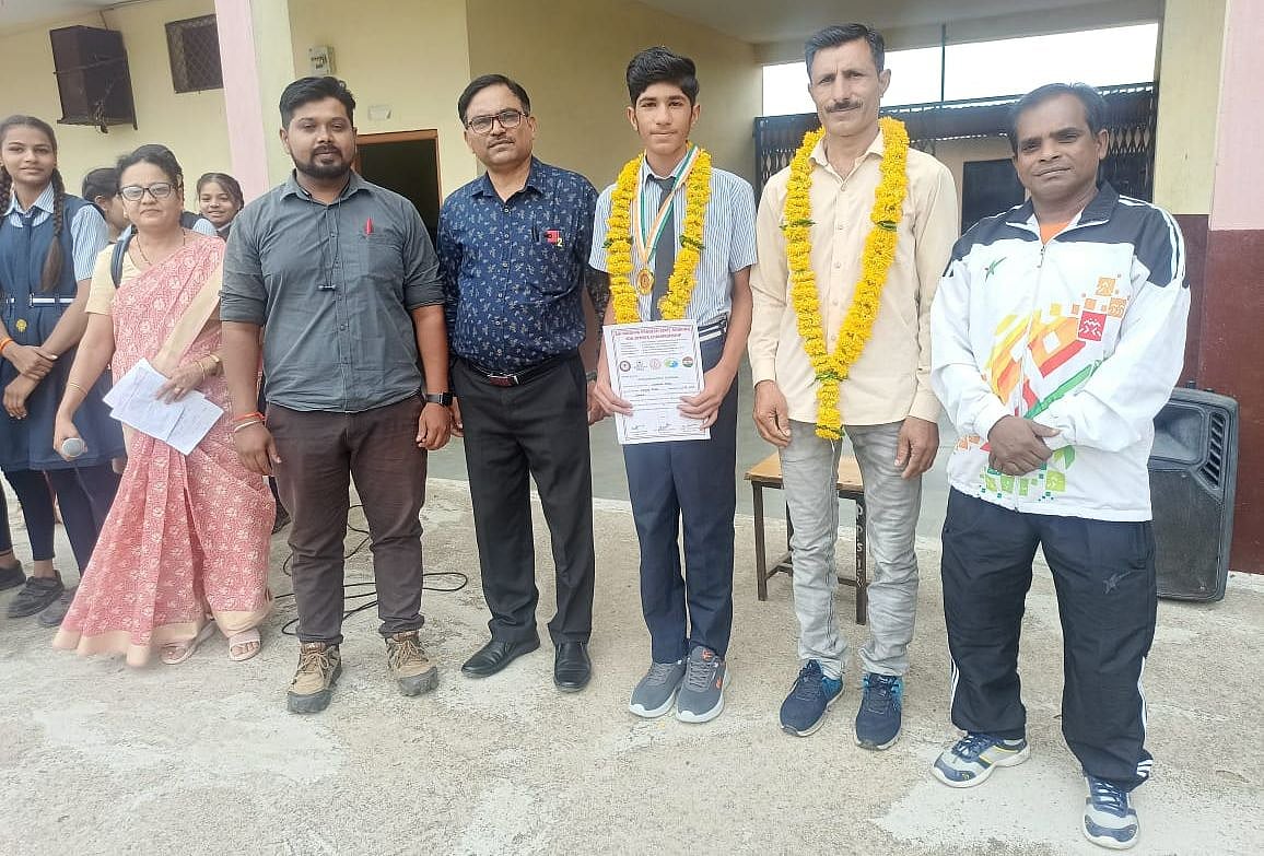 In the fourth state-level ranking yoga competition, organised by the Indore Corporation Yogasan Sports Association under the aegis of Madhya Pradesh Yoga Association, Sandesh Patel, a yoga player from Pothens Public School, performed brilliantly in his group and received a gold medal. For his achievements, school director Sosamma Pothan, principal Dheeraj Jaiswal and sports officer Rajendra Singh Sisodia congratulated Sandesh and his father Sanjay Patel.