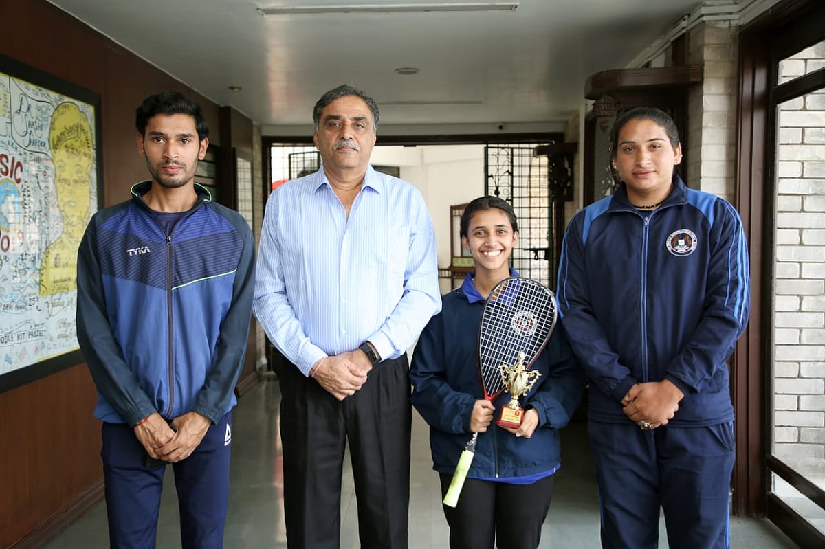 Talented squash player Shejina Benjamin of Emerald Heights International School won a medal in the Bangalore Open Century Squash Tournament. Some top ranked players of the country participated in this prestigious tournament. Shejina defeated seventh seed Vaibhavi Balaji of Karnataka in the quarterfinals. After this, she was defeated by Diya Yadav of Karnataka in the semi-finals. She faced second-seed Skandha Degra of Karnataka for the third place match and won the match. Director of the school Muktesh Singh honored her. On this occasion, Sports officer Akram Khan was also present .