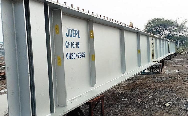 Indore (Madhya Pradesh): Three steel girders that would be used for the portion of the Metro train bridge being constructed over the Indore-Dewas rail line have reached the vacant land near MR 10 bridge.