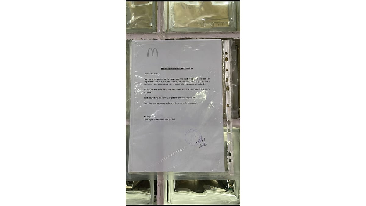 Indore (Madhya Pradesh): On the way to their preferred fast food restaurants, tomato lovers are going to miss their tangy taste because food chains like McDonald's and Burger King won't be putting tomatoes on any of their bun-based menu items.
