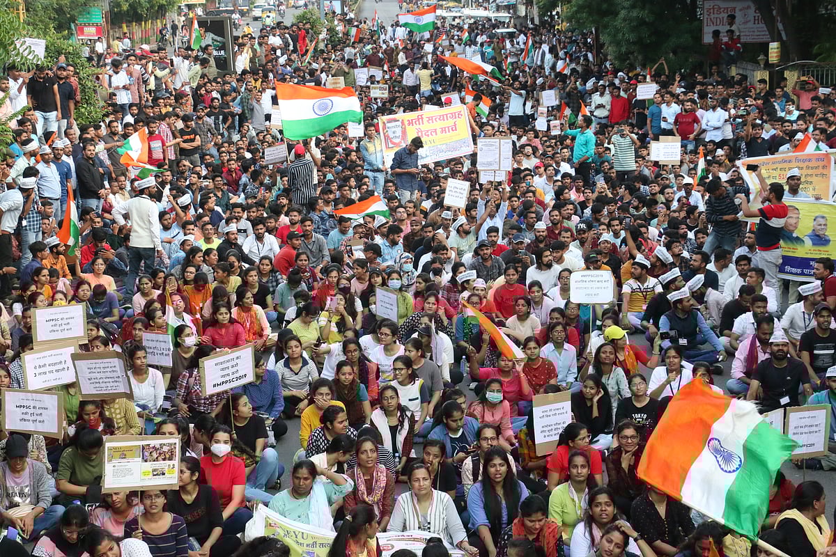 The youths have been protesting for past five years. But on Sunday they gathered in large numbers at Deen Dayal Park and staged a sit-in there. From there, they marched to Regal Square. Traffic jams took place at many places including Bhanwarkuan Square, Navlakha, GPO Square and eventually at Regal.