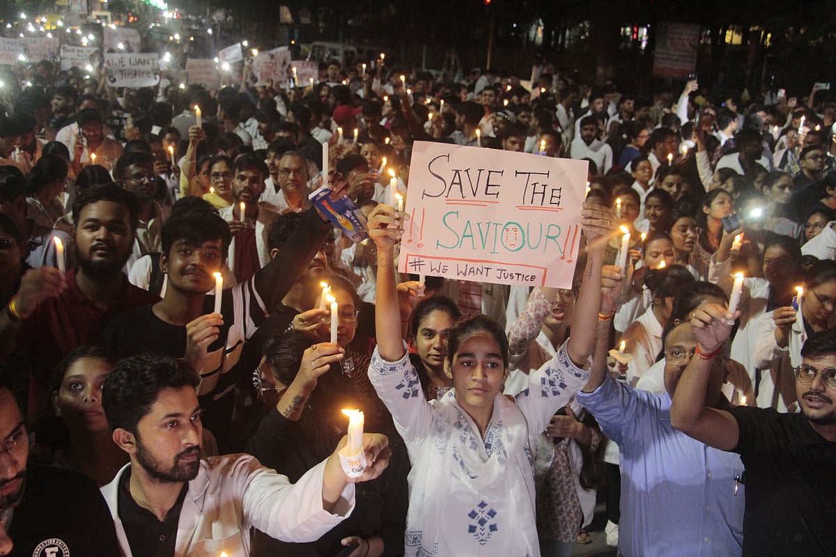 Indore (Madhya Pradesh): Doctors from all over the city including junior doctors and others took out a candle march from MY Hospital to Regal Square on Friday over the series of incidents that have taken place in Kolkata.