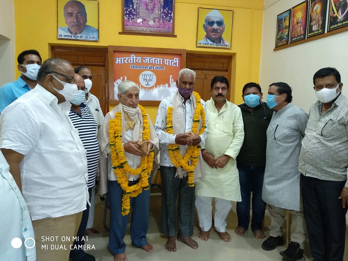 Sanawad: In Sanawad town of Khargone district, BJP workers observed June 25 as Black Day. Party workers visited the houses of the MISA bandis who were imprisoned under the Maintenance of Internal Security Act (MISA) during the Emergency period in the country. BJP leaders feted them with shriphal. Media in-charge Nilesh Malakar said that the party workers called on the kin to fete late Lalajeevandas Bansal, late Babulal Rathod, Kailash Jatale. Jatale told media persons about the atrocities and torture done on MISA prisoners during the Emergency imposed by then PM Indira Gandhi.