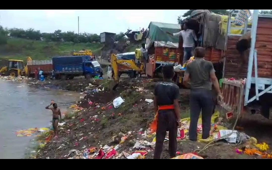 As many as 47 dumpers filled with idols reached Jawahar Tekri. On Monday, a video featuring IMC employees throwing idols into the water body had gone viral on social media.
