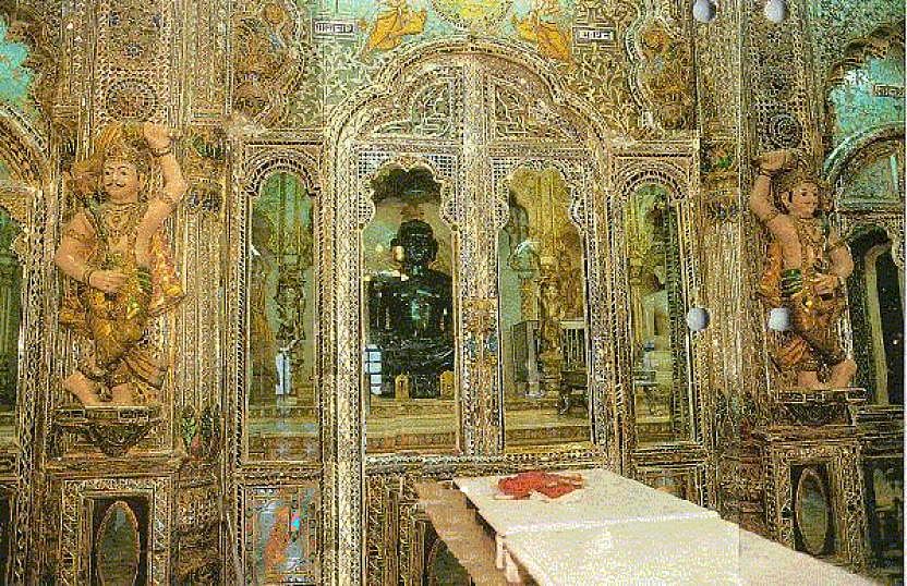 The interior of this entire temple including its floor has been crafted with glass. The glass was imported from Belgium and to fit this inside the temple, craftsmen were called from Iran. The stone used for this temple and craftsmen to fit it came from Rajasthan.