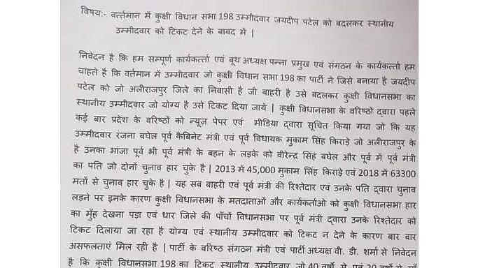 “Ticket should be given to the local candidate from Kukshi, as earlier under influence of some senior leaders, family members of former cabinet minister Ranjana Baghel got the tickets and faced defeat.”