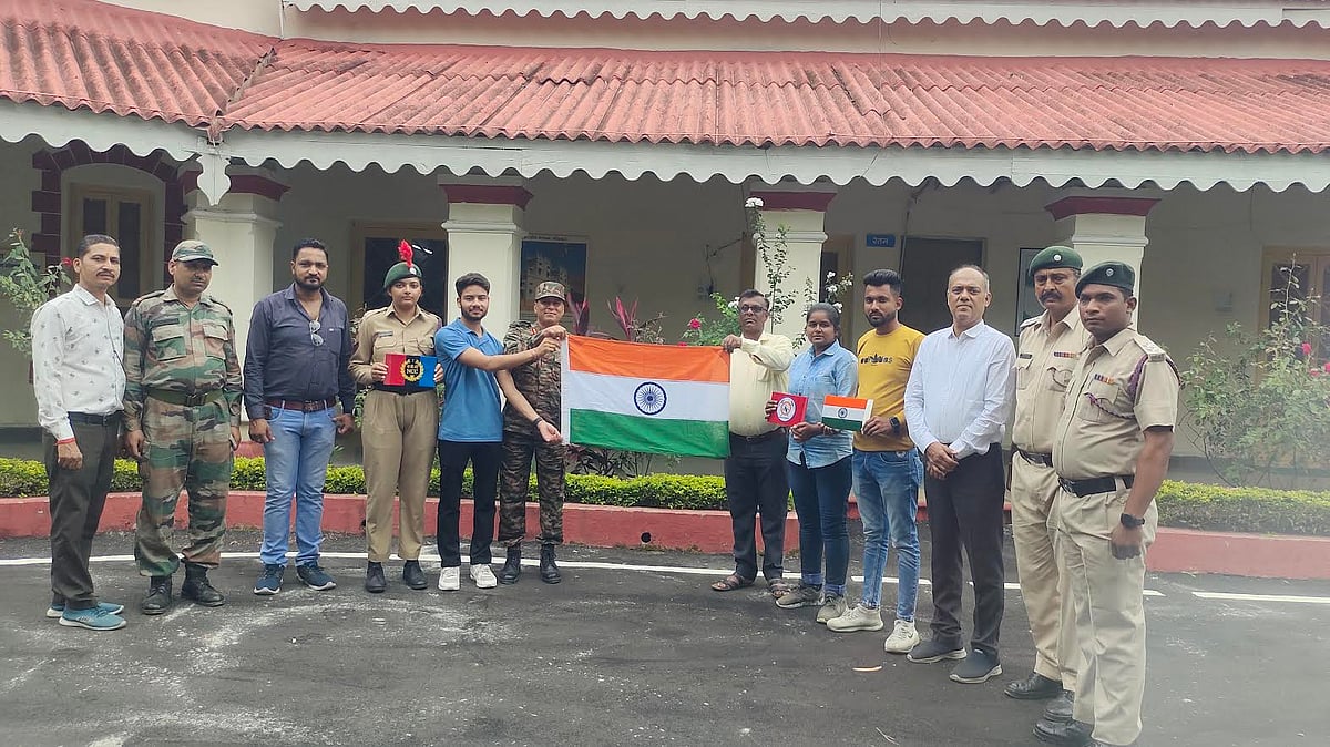 Mandsaur (Madhya Pradesh): In a remarkable gesture, Indian Army Colonel and Neemuch NCC commanding officer Rizwan Khan presented the Tricolour and NCC flag to the team of Mandsaur Mountaineering Association's members who are gearing up for an expedition to Machoi Peak in the middle of this month.