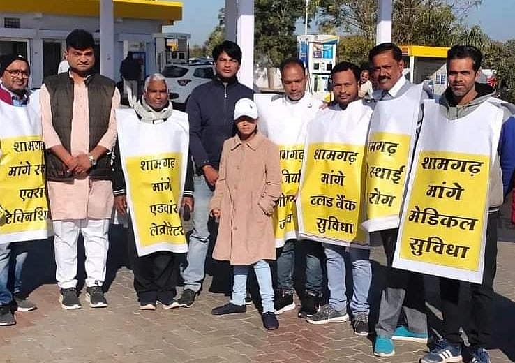 Shamgarh (Madhya Pradesh): Scores of people from the Shamgarh Assembly constituency represented by state cabinet minister Hardeep Singh Dung took out a march demanding more health services and facilities at the government hospital.