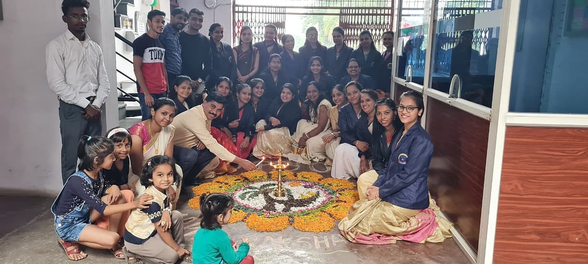 Teachers made a floral decoration in front of the school which is called Pookalam and lit the traditional lamp to welcome the King Mahabali.