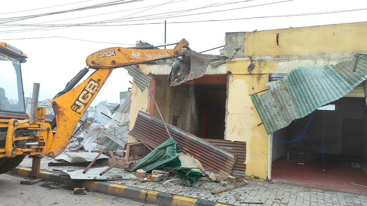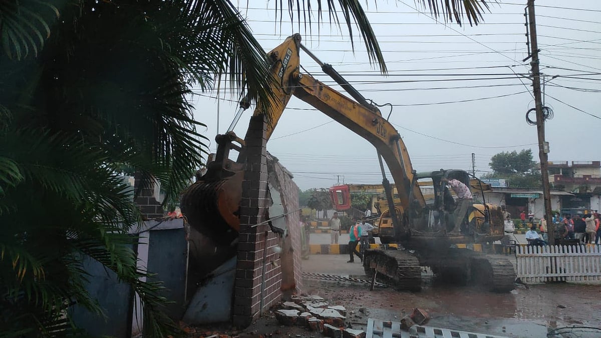 Indore (Madhya Pradesh): Indore Municipal Corporation, district and police in a joint anti-mafia drive demolished illegal structures including Rivaj Garden and Prem Bandhan Garden alongside Kanadia Road on Friday in the city.