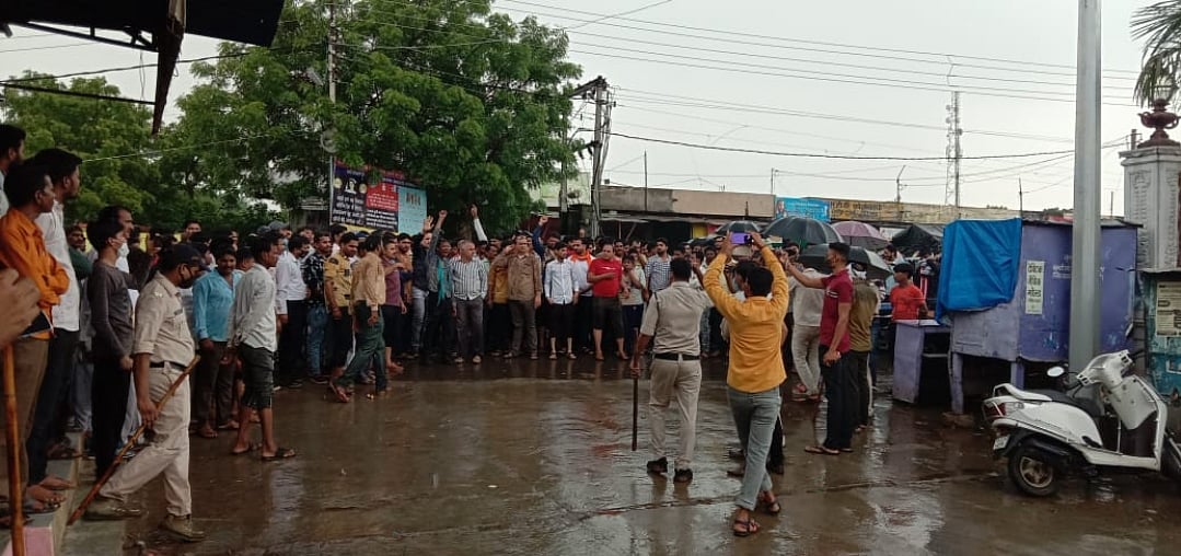 Kukdeshwar (Madhya Pradesh): A chaotic situation prevailed at the Kukdeshwar bus stand after scores of RSS and Bajrang Dal activists raised objections over an illegal structure which has been raised overnight by members of a specific community ignoring administration directives.