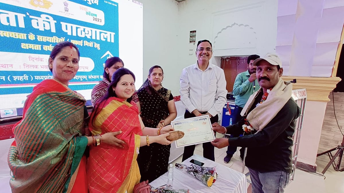 Chairperson of Swachhata Richa Jitu Tiwari urged the Safai Mitras to take oath to make Narmadapuram the cleanest of all districts in the state under Cleanliness Survey -2023.