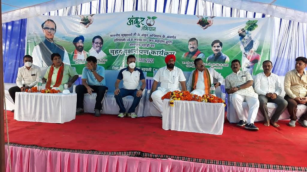 Barwani (Madhya Pradesh): Cabinet Minister of Madhya Pradesh government and in charge of Barwani Hardeep Singh Dang who is on a trip to the district went to the Ashagram hill to plant saplings.