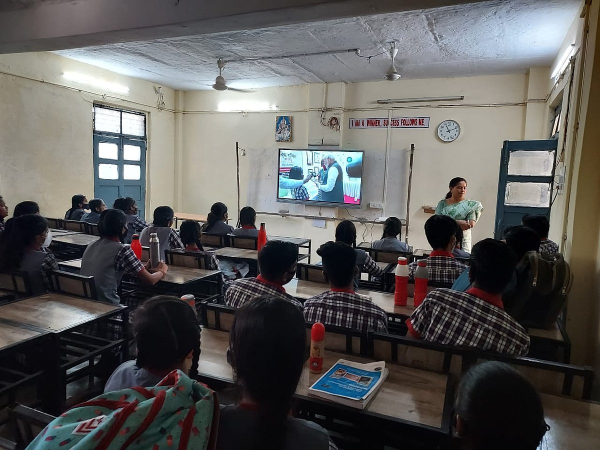 NARMADA NAGAR: Standard 9th to 12th students and teachers of Kendriya Vidyalaya, took benefit of the "Pariksha Pe Charcha" programme of the Prime Minister. Various arrangements were made on the school premises for the programme. Five smart televisions were set up in the classrooms, and a big screen was also set up at the school's CCA Hall. The school in charge Dr Santosh Dhotre and other teachers were also present at the programme.