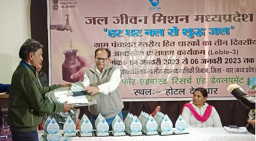 Dhar (Madhya Pradesh): On the third day of the village-level community training programme, organised by the public health engineering department in Sardarpur of Dhar, water committee was instructed under Nal Jal Yojana. The programme was conducted at Dev Hotel and its main objective was the successful implementation of the scheme in each and every house in the area. On the completion of training sessions, certificates were distributed among the participants by the executive engineer of Dhar, KP Verma.