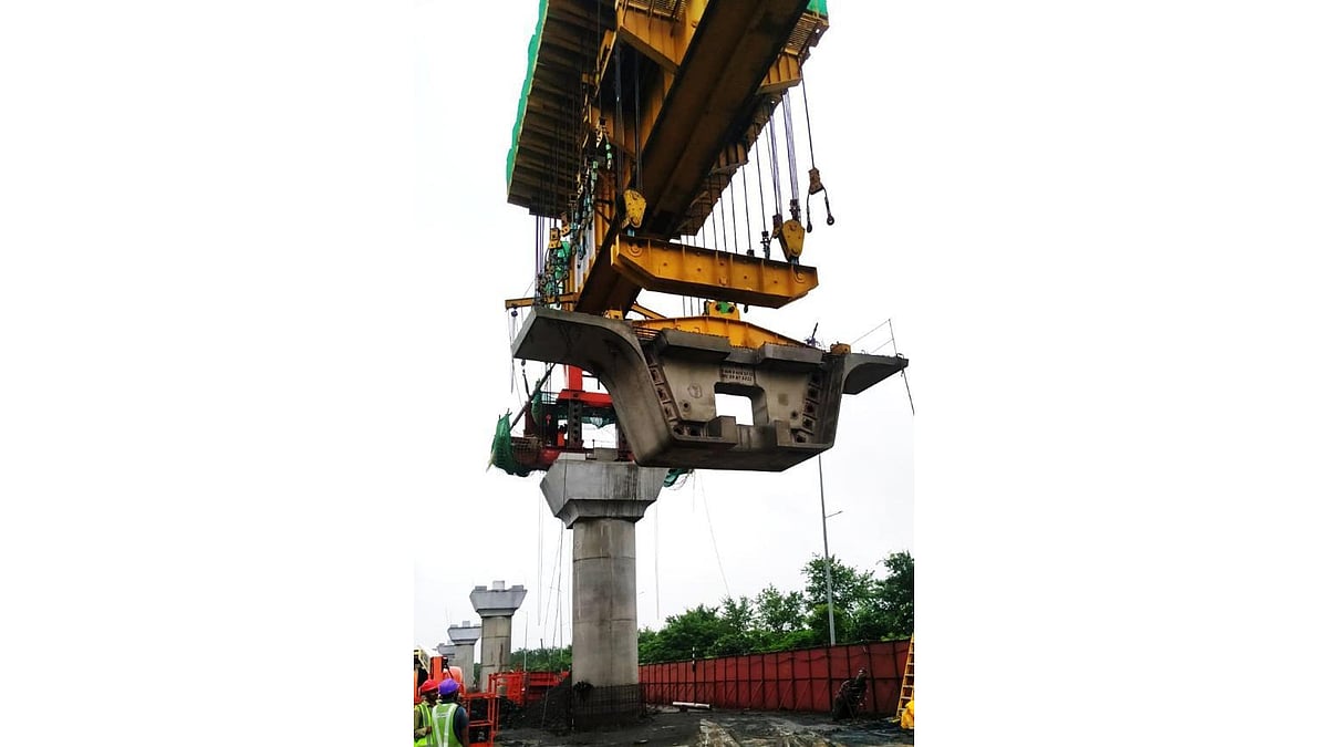A segment launcher has been set up at Bapat Square for starting segment launching towards Vijay Nagar Square. The corridor from MR 10 towards Bapat Square has also been developed and most of it has been completed with the segment launching work.