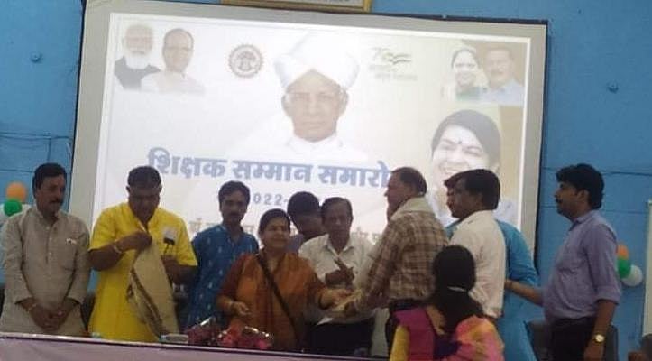 Mhow (Madhya Pradesh): Teacher's Day was celebrated at Shri Jai Govind Gopinath High Secondary School. This programme was presided over by the trustee of the Social Service School. Senior doctor Ashok Mewada, the chief guest of the programme said that the school has been engaged in providing higher education to the society from the very beginning. According to the demand of the time, education is being conducted for the children of poor sections and the goal of the organisation is to give good education and for this if needed regular training is being imparted training to teachers from time to time by this school. Teachers were honoured on this occasion. The programme was conducted by Sanjay Amin and Varsha Saxena.
