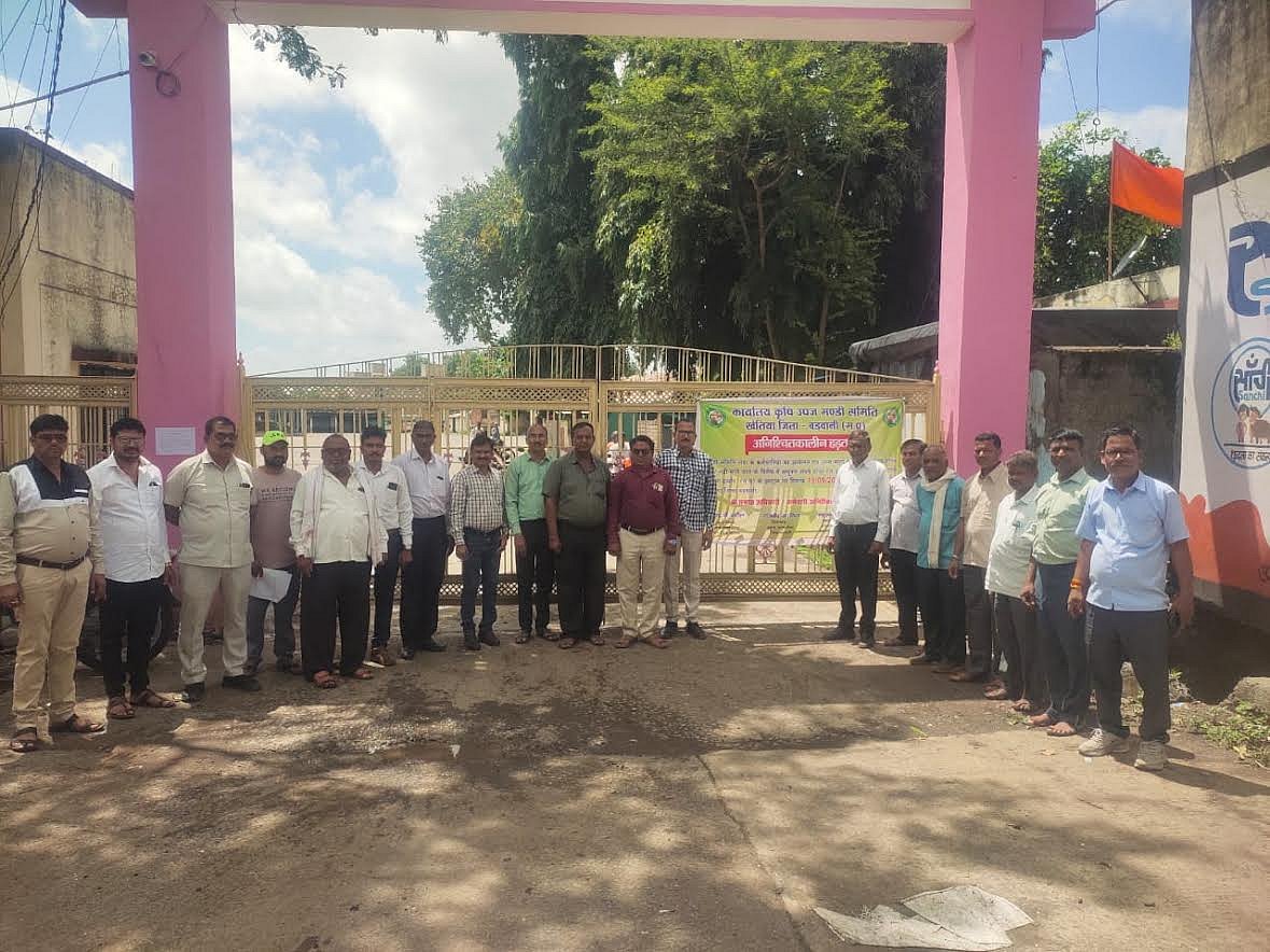 Khetia (Madhya Pradesh): Pressing their prolonged unaddressed demands, employees of the Agricultural Produce Market Committee (APMC) in Khetia have initiated an indefinite strike, in response to a call by the Agricultural Produce Market Committee Employees Federation.