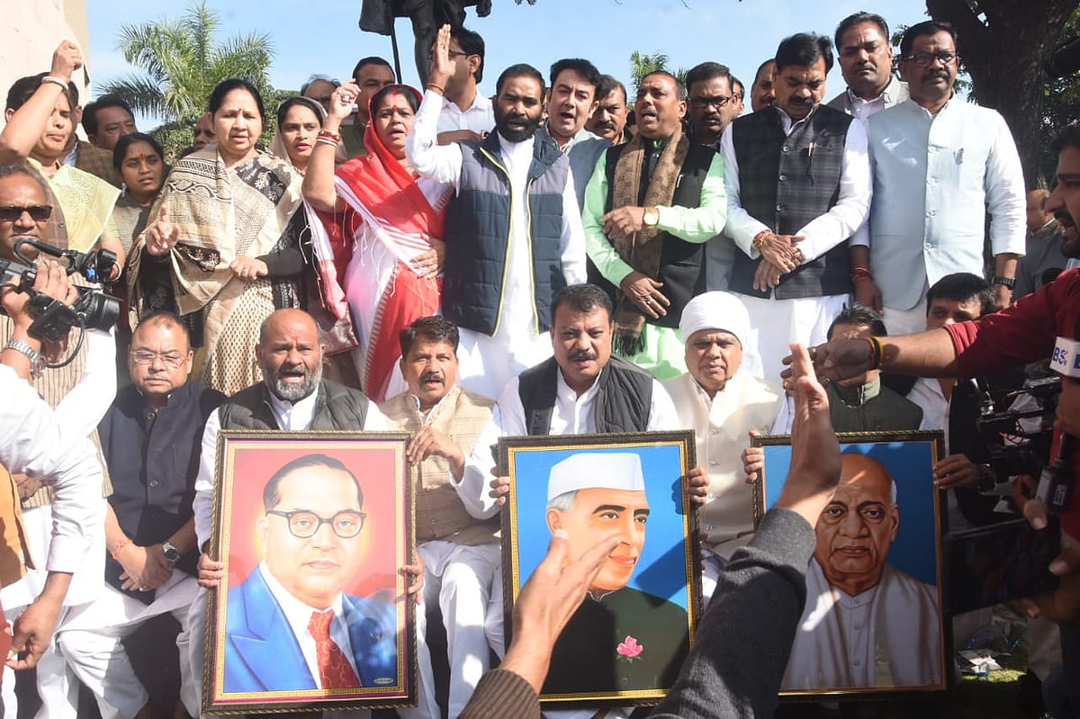 Bhopal (Madhya Pradesh): Two days after Jawaharlal Nehru's portrait was replaced with that of Dr BR Ambedkar's inside the Madhya Pradesh Legislative assembly, State Congress President Jitu Patwari slammed the BJP for "belittling democracy" on Wednesday.