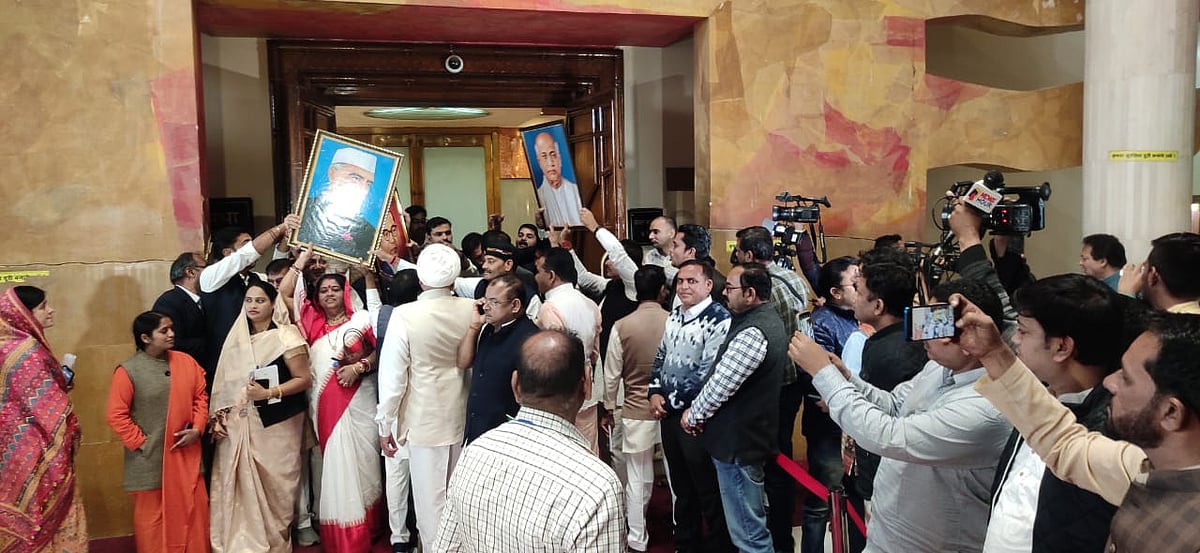 After being stopped by security officers, the MLAs were eventually permitted to enter the House without the portraits.