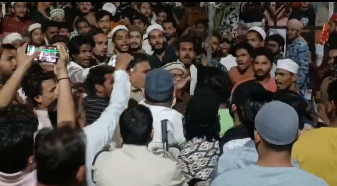 Meanwhile, a large number of people gathered at the police station in support of the complainant and raised slogans demanding strict action. The situation turned tense when some members of the crowd allegedly started pelting stones inside the police station premises.