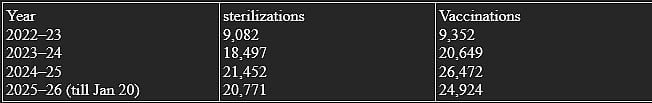 Despite increase in sterilisation and anti-rabies vaccination over past four years, numbers remain insufficient compared to rapidly growing dog population.