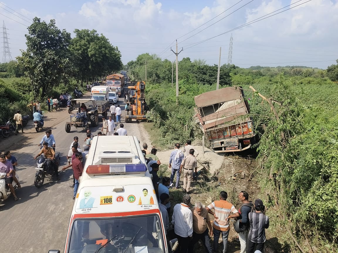 Sanawad (Madhya Pradesh): Two persons were killed in a road accident when a speeding gravel truck collided with a two-wheeler and an oncoming bus near the Reliance Pump on Ichhapur Raj Highway on Sunday.