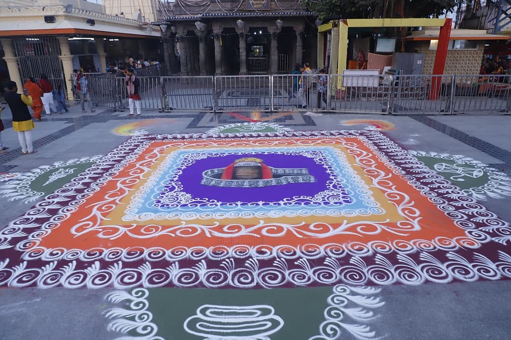 Rangoli across the temple campus is being created by Pankaj Sehra and his team from Ujjain along with Keshav Sharma from Indore.