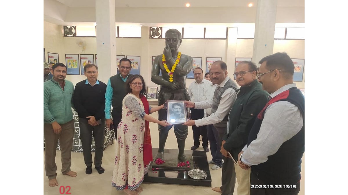 Indore (Madhya Pradesh): Samagra Shiksha Saksharta joint secretary Archana Sharma Awasthi on Friday visited Chandrashekhar Azad Nagar as a part of an educational tour programme. During her visit, she paid tributes at Azad Smriti Mandir, honouring the iconic freedom fighter Chandra Shekhar Azad. She also visited an exhibition based on Azad's life followed by a welcome by Collector Abhay Arvind Bedekar upon arrival at Azad Smriti Mandir. She then inspected schools to assess the level of education and the facilities available. She also inspected Integrated Government School, Kalyavav, where she participated in an educational dialogue with primary school students.